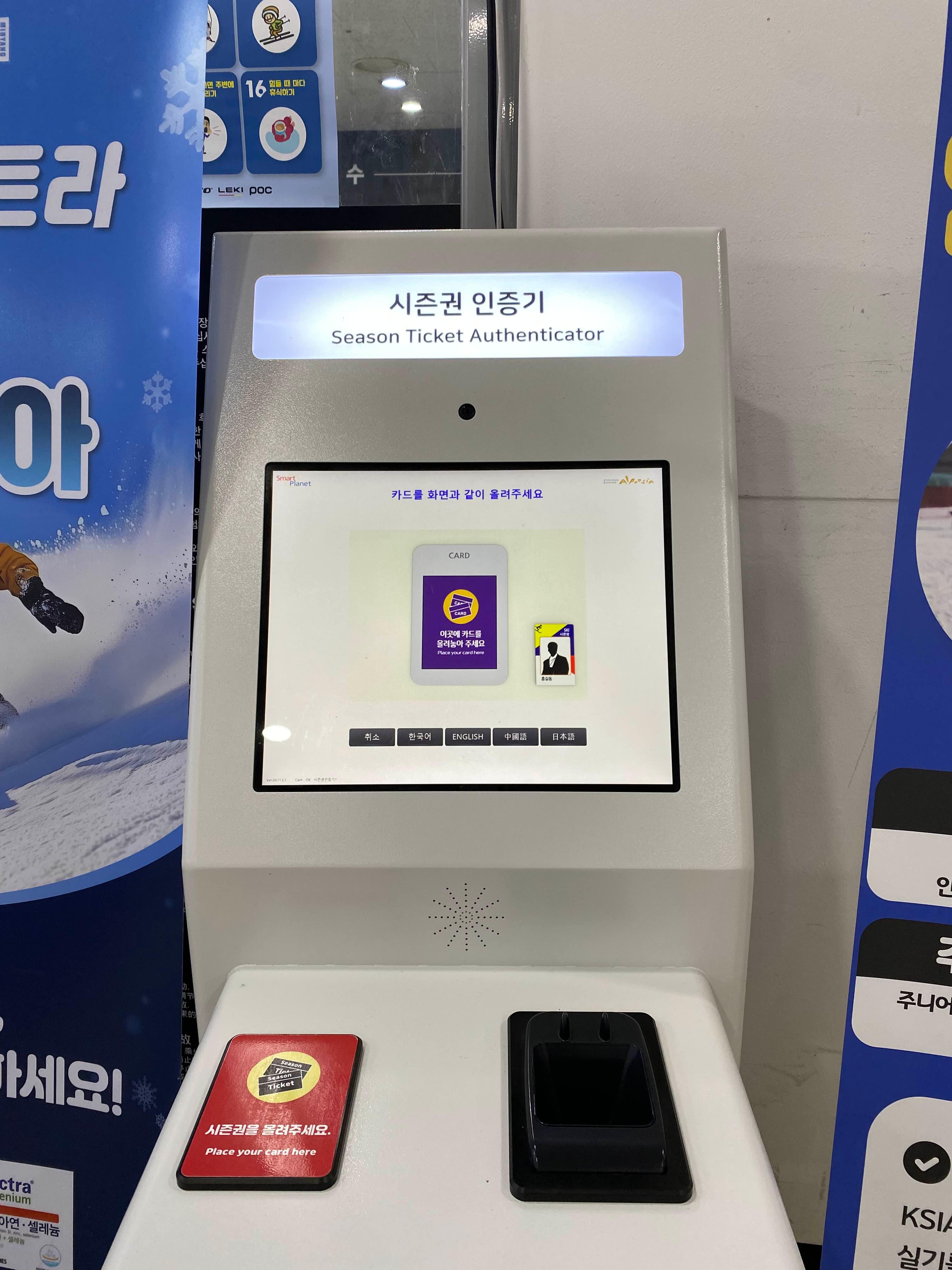 리프트권이 용평스키장보다 좀 더 저렴한 가격이에요. 시즌권이 있으면 스키하우스 내부에 설치된 기기에 간단한 인증으로 리프트를 탈 수 있어요.